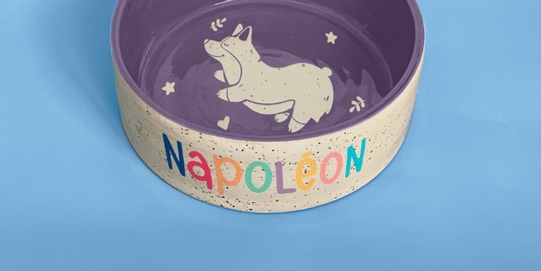 Qui n'a jamais rêvé de faire plaisir à Médor ou Félix avec une gamelle à son nom et a son effigie ?